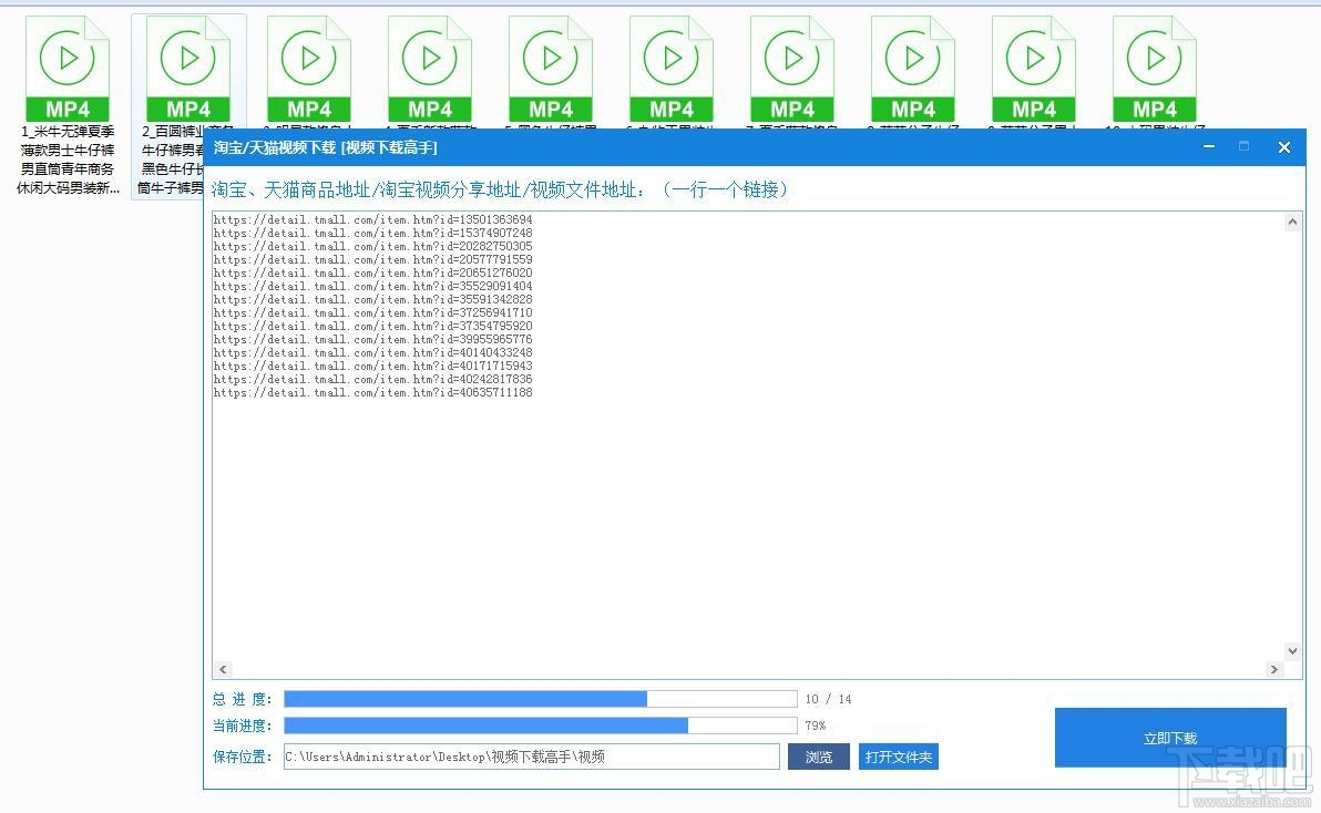 可以直接复制淘宝和天猫的商品链接到软件中自动获取主图视频及描述视频,也可以在描述视频中复制FLASH地址到软件中下载,或者复制其他平台的视频地址到软件中下载。