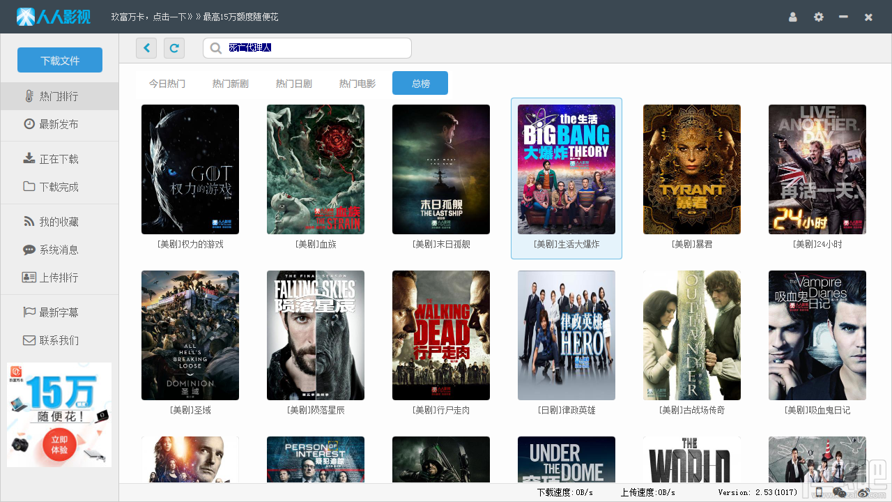 8.75 MB/2020-08-17迅雷大全是一款聚合了互联网多方影视资源,迅雷大全集在线搜索、点播和下载为一体的客户端产品。旨在打造互联网比较大的影视资源聚合平台,希望用户能通过我们的产品快速方便的找到自己喜欢的视频。