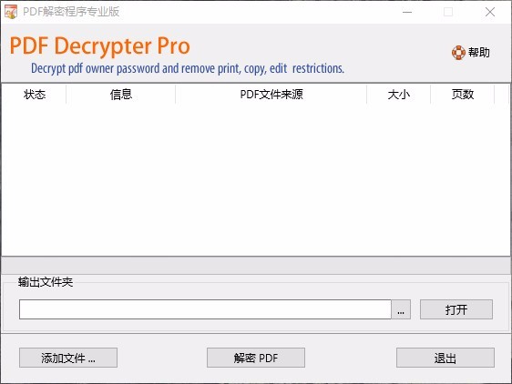 大多数PDF文档都具有“所有者密码”,使其无法编辑,该程序旨在帮助您快速删除PDF文件的使用限制。