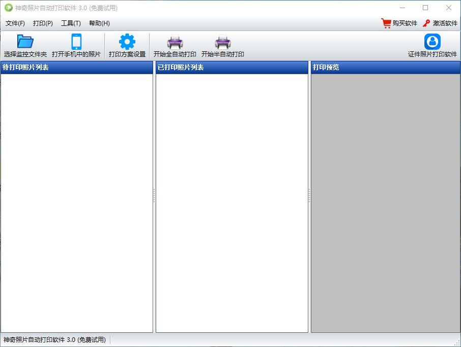 神奇照片自动打印软件是一款非常专业且优秀的证件照片打印软件,可帮助用户快速将证件照片进行打印,具备简洁直观的操作界面,旨在为用户提供最简单的操作,软件界面分为三个浏览区,分别为待打印照片列表、已打印照片列表、打印预览,可将您手机中的照片发送至软件,通过扫描二维码的方式即可进行发送,支持不同的打印方式,包括全自动打印以及半自动打印,可自定义设置打印方案,选择打印机、打印份数、照片尺寸、照片边框,这么好用的软件,赶快下载试试吧!