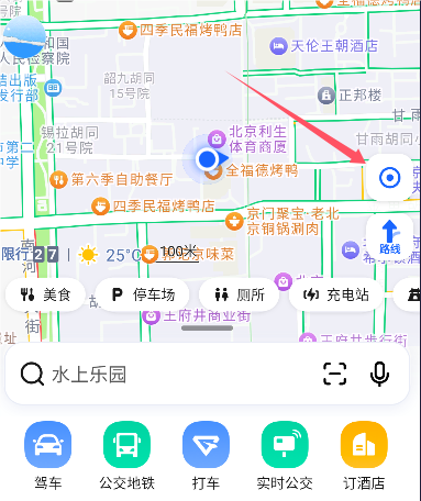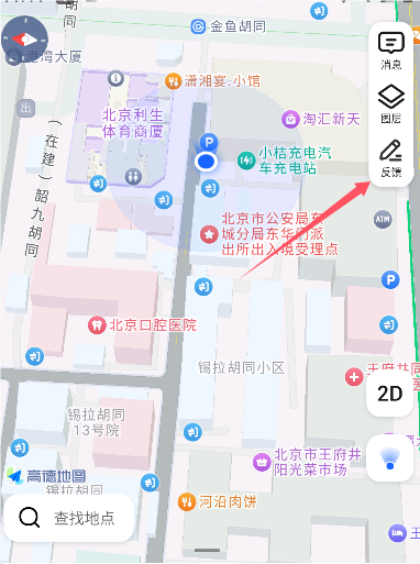 1、进入高德地图以后,在地图的下图位置点击圆点,切换到2D导航视角。