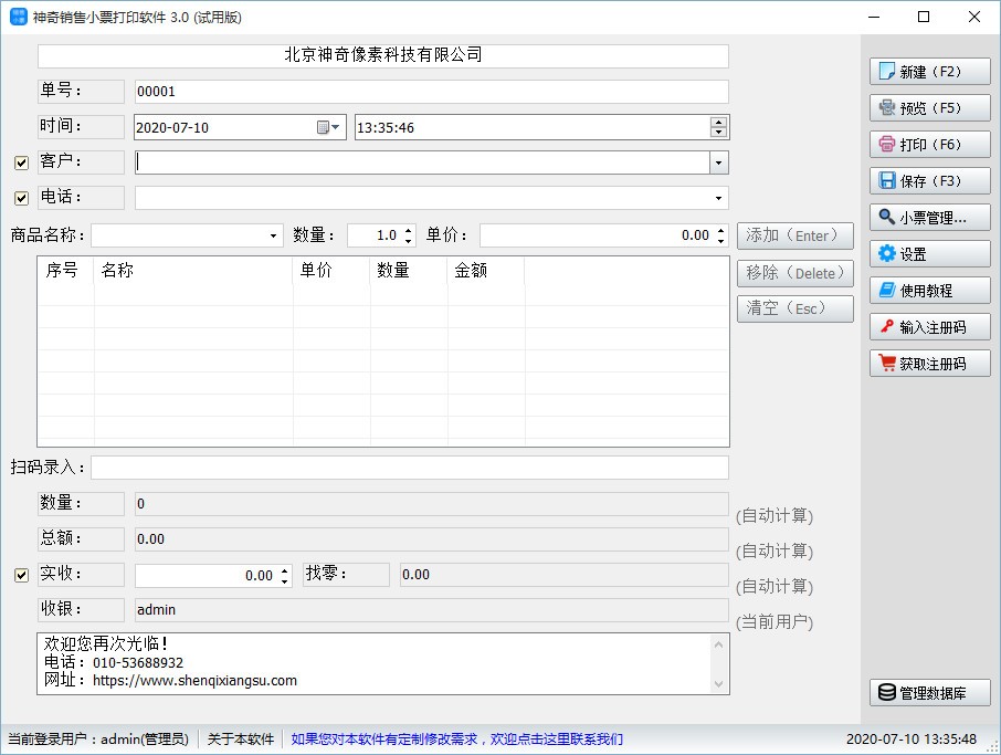 神奇销售小票打印软件是一款非常专业且优秀的销售小票打印软件,可帮助用户快速将销售小票进行打印,自动导入时间以及日期,商品录入快速方便,也可扫码录入商品信息,自动计算录入商品的总数量、总额,通过实收金额自动显示出找零,不用自己计算,节约了时间,提高了效率,打印之前,支持打印预览,可自定义打印设置以及字体设置,自由调整纸张宽度、页边距和整体偏移,提供多种多样的字体可供选择,还可对字形和大小进行设置,达到您满意的效果后再进行打印,支持小票管理,欢迎有需要的用户下载体验