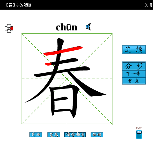 3、“图片”功能提供文字笔划书写的动态图像,通过这个功能可以查看文字书写的正确笔划。