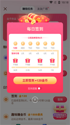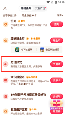 3、邀请好友加入可以获得现金,另外看广告、视频、听书均可赚金币。