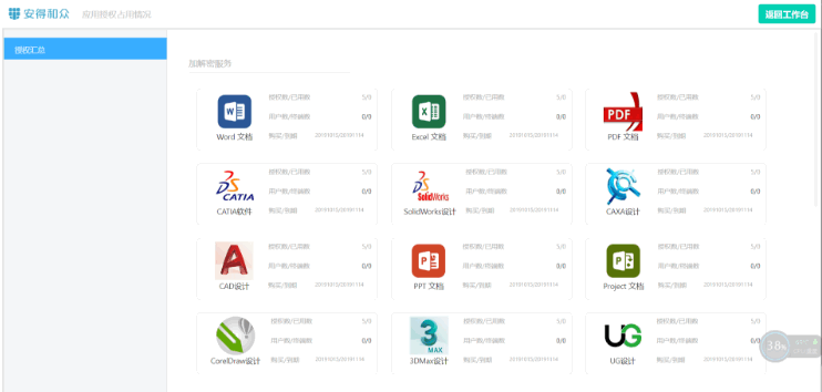 支持的文件类型为:Word,Excel,PDF,CATIA,SolidWords,CAXA,CAD,PPT,项目,Coredraw,3DMAX,UG。内容控制:内容复制,鼠标拖放内容,另存为,在文件中插入文件,远程,屏幕截图。精细管理受保护文件类型和软件功能。