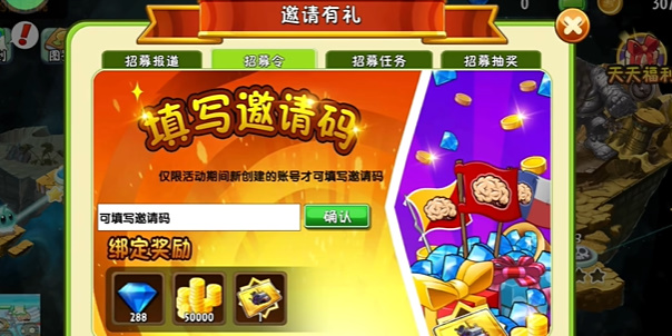3、进入邀请有礼页面后,找到顶部的【招募令】,在指定位置输入邀请码。