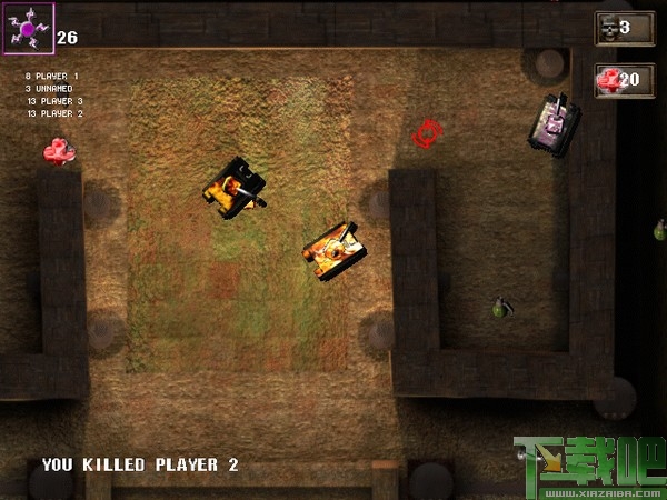 终极坦克大对决(Final Fighter)是一款使用俯瞰平面模式的坦克对战游戏,游戏的操作很简单,主要使用键盘的方向键和鼠标,与目前最流行的操作模式差不多,利用方向键操纵坦克车的前进后退方向,用鼠标来瞄准敌人,按下鼠标左键就可以发射武器,按下右键切换武器种类,武器除了有机枪外还有飞弹,火焰枪,地雷等等多种武器可以用来对付敌人,另外地图上面也有可以补充体力的大力丸喔。