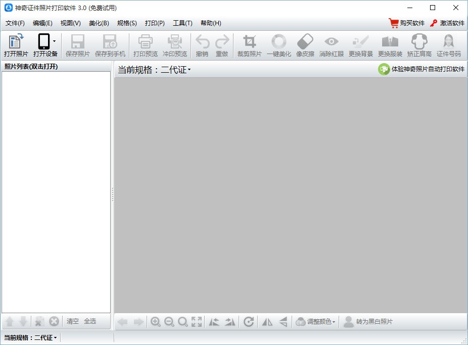 神奇证件照片打印软件支持一键美化、去除斑点、图片颜色调整、消除红眼、转成黑白照片;