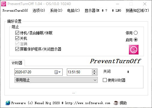 1、PreventTurnOff可以帮助用户禁止电脑关机
