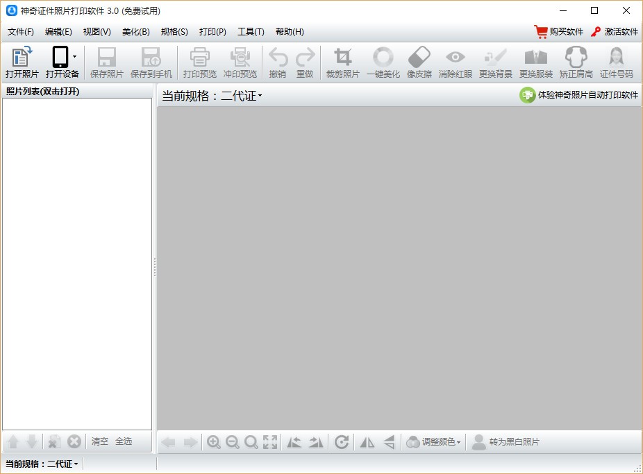 神奇证照打印软件是一款非常专业且优秀的证照处理打印软件,可帮助用户对照片进行处理,处理完成后,可将其进行打印,软件具备简洁直观的操作界面,旨在为用户提供最简单的操作,照片添加后,全部显示在照片列表中,便于进行管理,需要打印的照片再双击添加到编辑打印区,使用起来更加方便,提供多个不同的编辑工具,支持放大或缩小视图,同时支持美化功能,通过不同的方面对照片进行美化,如裁剪照片、消除红眼等,提供不同的裁剪方式,如果您是新手,也可查看软件自带的使用教程,掌握具体的操作方法,这么好用的软件,赶快下载试试吧!