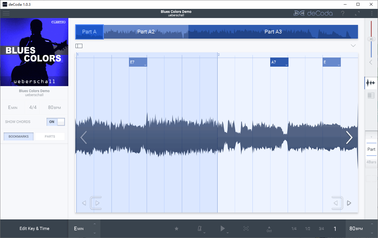 deCoda是一款强大的音乐解码工具,它可以解码任何音频文件,让用户可以在短时间内学习音乐,这款工具主要是想帮助用户尽量减少学习歌曲和演奏乐器的时间,让用户使用极少的时间就可以学到很多的音乐知识;使用这款工具您可以轻松理解琴键,音乐的播放速度,和弦的位置等知识,您还可以减慢音乐的速度或加快音乐的速度,更改琴键并且添加节拍器等,当您集中精力在乐器上时,你完全可以使用“聚焦”模式来突出显示该乐器;这是一款非常不错的软件,对于爱好音乐的用户来说,欢迎需要的朋友下载使用。
