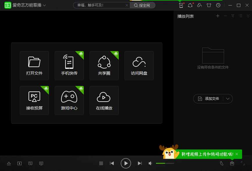 爱奇艺万能联播是一款多功能的视频播放器,它除了支持常规的视频播放功能之外,还支投屏,手机快传,文件共享等功能;该软件的使用方式简单,通过视频链接就可以轻松在线播放视频,用户视频播放的一切功能,支持添加外部字幕;通过这款软件,用户还可以轻松实现视频文件的快速传输和共享,让用户可以在手机或者电脑中尽情的观看影片;软件的界面干净整洁,没有任何广告和捆绑软件,是一款安全绿色的视频播放工具,需要的朋友可以下载使用。