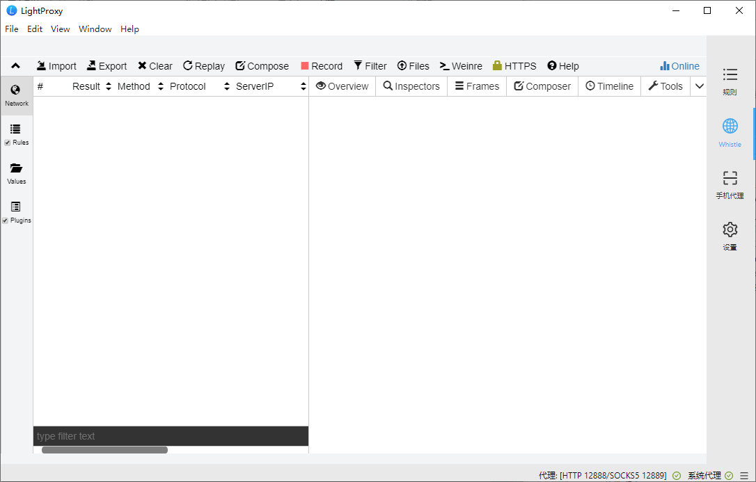 首先确保LightProxy右下角的代理和系统代理状态为OK,如图所示: