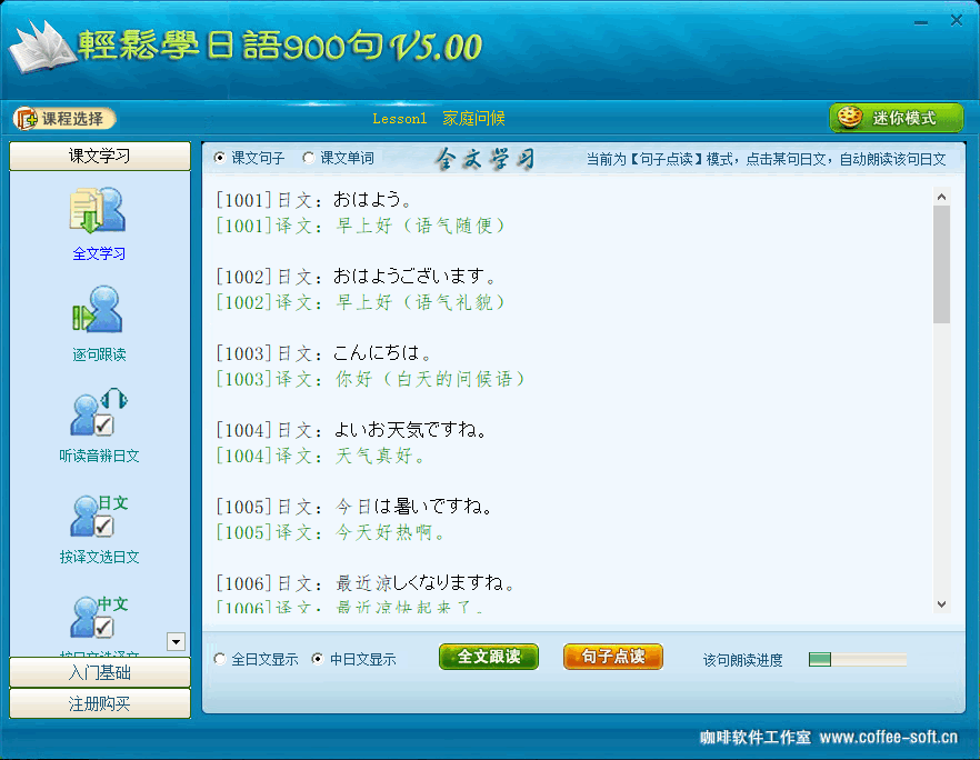 4、全文跟读模式、逐句跟读模式、迷你学习模式随意切换