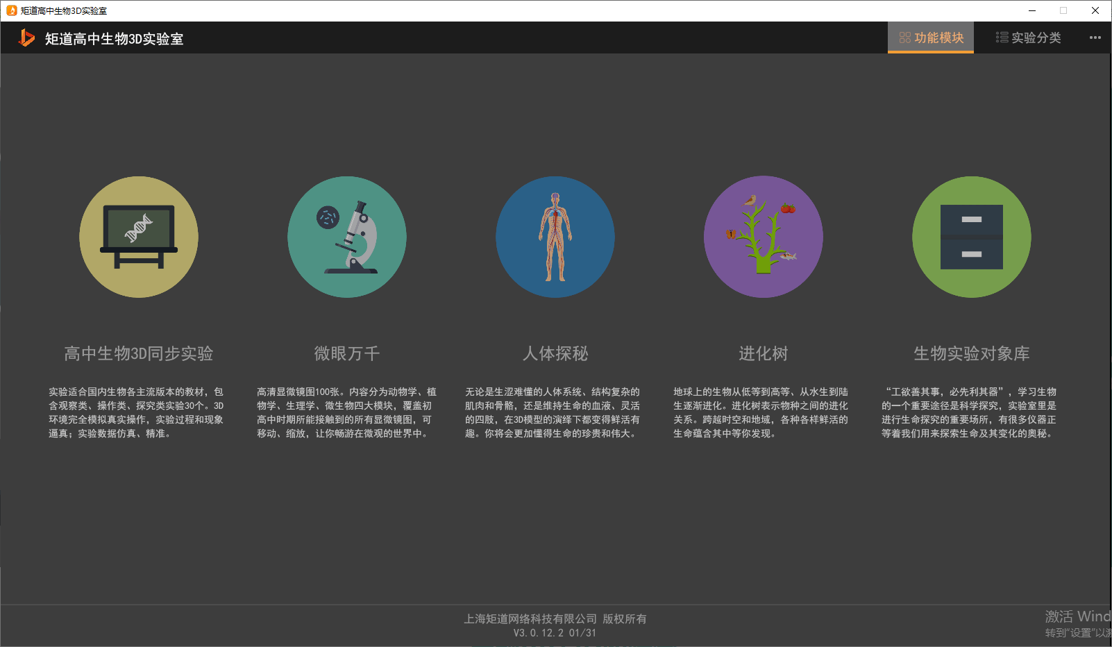 生物3D同步实验实验适用于国内各种主流生物板块的教材,包括60个观察,操作和探究实验。真实的操作是在3D环境中模拟的,实验过程和现象逼真;