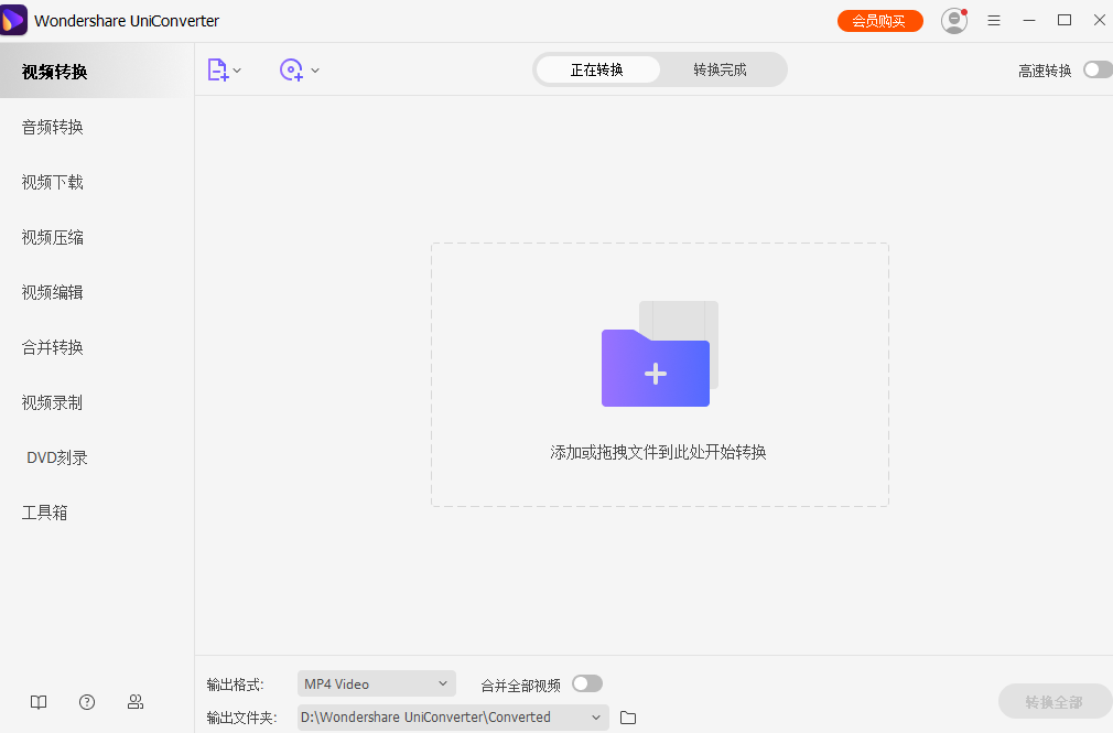通过文件浏览器窗口寻找您要转换的媒体文件,将您要的媒体文件拖拉入万兴优转的转换中标签页。参考更多有关添加媒体文件 >