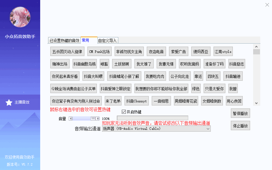 1、支持快捷键设置,可以快速的播放对应的音效。