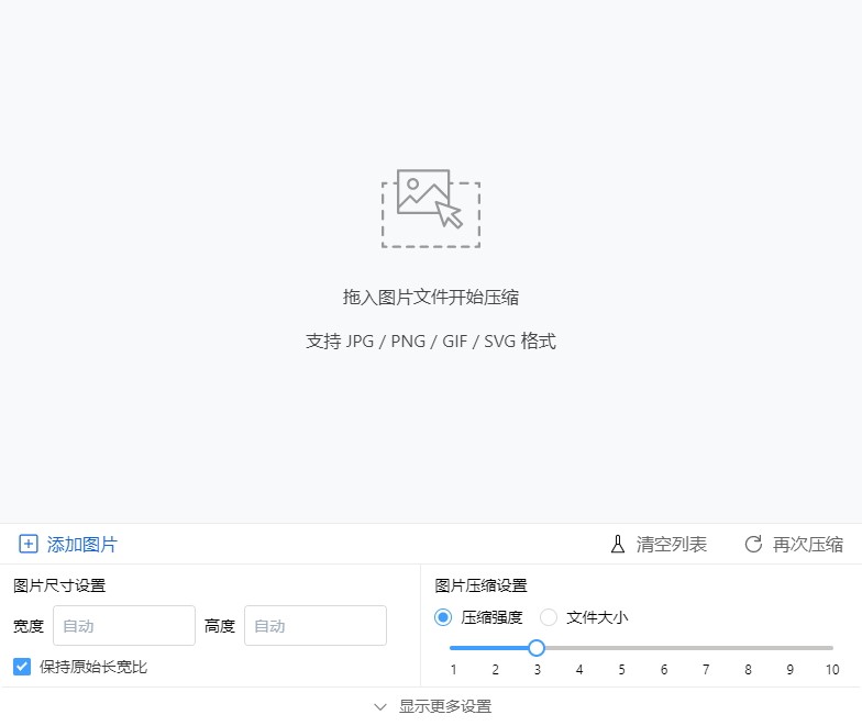 支持 JPG/PNG/GIF/SVG 等多种图片格式进行压缩。