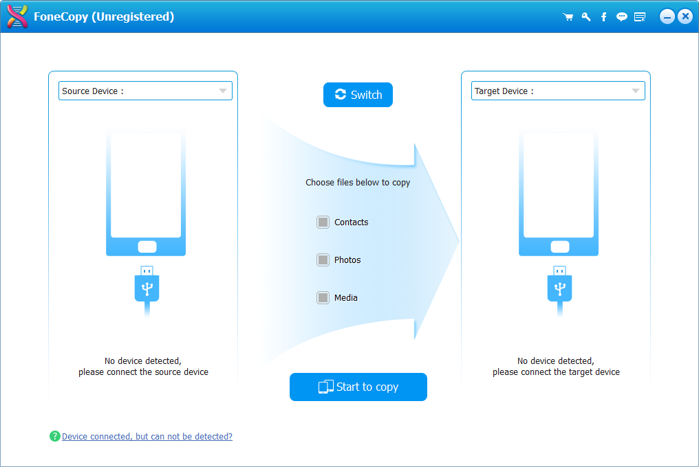 换了新手机后,无论您是使用iPhone还是Android手机,只需连接两个设备,您可以轻松地将联系人,照片,歌曲和其他媒体文件从旧手机复制到新手机。此外,您可以选择数据类型并将其迁移到新手机。