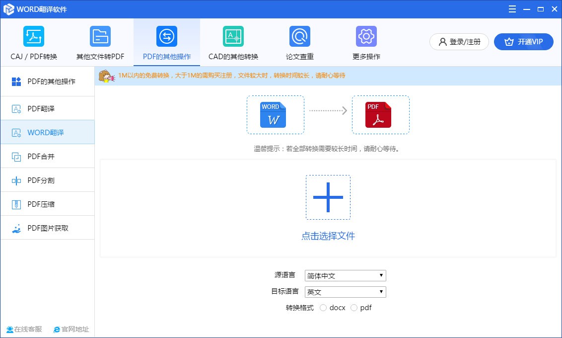 具备了极其简单的操作界面,用户仅需简单几步即可快速完Word文档的翻译