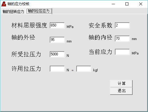 7、这里是轴的拉压应力计算,输入相应的数据,点击计算即可