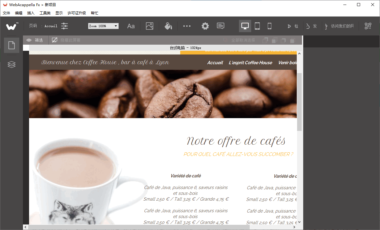 WebAcappellaFx是一款可视化网站搭建工具,坚持所见即所得的设计原则,软件成为众多站主开发国际响应式网站的工具之一;软件的使用门槛比较低,即使您不懂得HTML和Javascript代码也可以轻松的使用它设计网页,因为这款软件为用户提供许多可用的精美网页模板,用户通过一键嵌套这些模板,就可以直接在网页中输入内容,完成网页的制作;通过直观的用户界面,WebAcappellaFx向您呈现的效果即是您网站搭建完成之后的显示效果,并且这款软件支持多种设备屏幕的网站搭建,比如您可以制作适合在手机上浏览的网页,也可以制作在电脑端上浏览的网页。