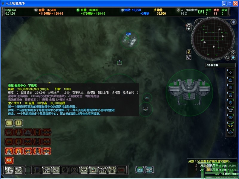 人工智能战争舰队司令基于空间的即时战略游戏,可以单人游戏,最多支持8人同时游戏强大的电脑智商,自行撤退、探索、防御,如老兵一般的战略战术,三万多种艘舰船同时在10到120个星系之间进行战斗,160亿张地图,并且每张地图上还有与之匹配的特殊单位。