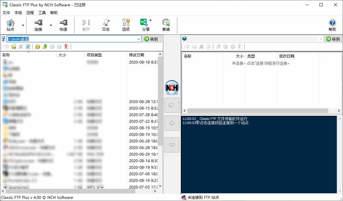 NCH Classic FTP是一款经典的FTP文件传输工具,使用这款软件用户可以轻松的实现远程文件传输和下载,是网站站主必备的一款FTP工具;该软件不仅易于使用,并且也是目前最稳定,最全面的一款FTP客户端之一,软件支持安全的文件传输,可与目前流行的各种FTP服务器兼容,并且还支持多种主流的网页协议;用户还可以直接在NCH Classic FTP上对文件进行管理,比如更改文件的名称,删除文件,添加文件等等,使用这款软件,它将会轻松安全的维护您网站上的各类文件。