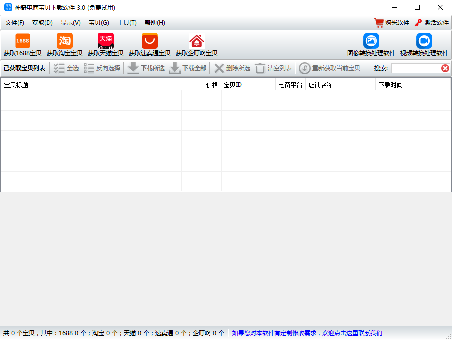 1、双击软件进入软件电商宝贝下载页面,该页面可以点击选择获取宝贝的地址进行宝贝获取