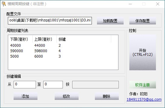 模糊周期按键是一款非常简单且实用的键盘自动按键软件,可帮助用户设置一些自动快捷键让软件自动完成,如果您需要重复进行某个操作,就可以使用到这款软件,不仅节省时间,还能让您有更多时间做其他事,不用自己手动进行操作,操作也非常简单,只需加载配置,编辑需要使用的按键,一键即可开始进行相关操作,配置中已经设置了一些周期按键,可在列表中进行查看,若需要添加其他周期按键,可自定义周期按键,并可添加至列表中,同时也可随时进行修改,使用起来很方便,欢迎有需要的用户下载体验