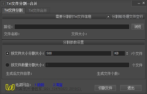TXT文件分割合并器是一款非常简单且实用的TXT文件分割合并软件,可帮助用户快速将TXT文件进行分割合并,具备简洁直观的操作界面,旨在为用户提供最简单的操作,且软件拥有的两大功能集中显示在同一界面,便于用户快速选择,如TXT文件分割,只需添加需要分割的TXT文件,选择分割方式,一键即可切割文件,快速且准确的将TXT文件进行分割,分割完成后,自动保存并显示生成后文件目录,便于快速查看指定目录,还可查看文件生成个数,总之这是一款非常好用的软件,如果您有需要,那就赶快下载体验一下吧!