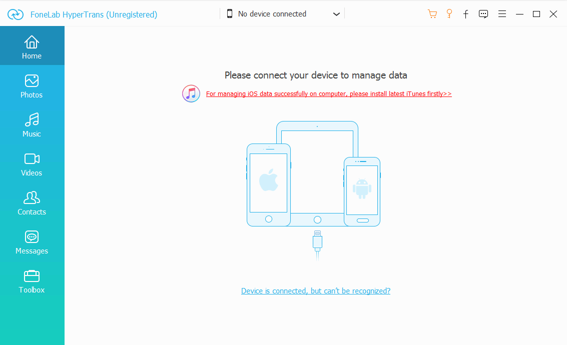 FoneLab HyperTrans是一款强大的数据互传工具和文件管理工具,它可以帮助用户进行手机与手机之间的数据互传,电脑与电脑之间的数据互传以及电脑与手机之间的数据互传;软件支持安卓设备和iOS设备,这意味着用户可以连接苹果手机而不需要另外的下载专用的数据传输工具,并且FoneLab HyperTrans还支持转换heic图像,将heic图像转换成常用的图像格式,让用户将苹果手机中的图像传输到其它设备上之后依旧可以正常打开;连接手机之后,用户可以直接管理手机中的数据文件,可以进行删除,移动,编辑等操作。