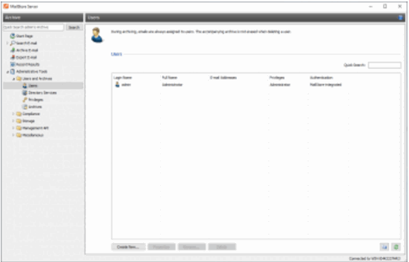 如果您的初始归档需求仅包含一个邮箱或电子邮件文件(例如PST文件),则手动创建用户就足够了。