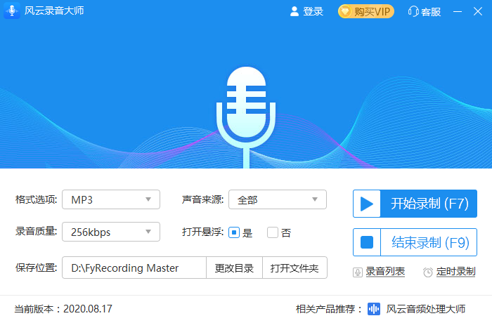 1、完成软件安装双击软件进入风云录音大师操作页面,该页面可以点击设置录音输出格式和音频录制