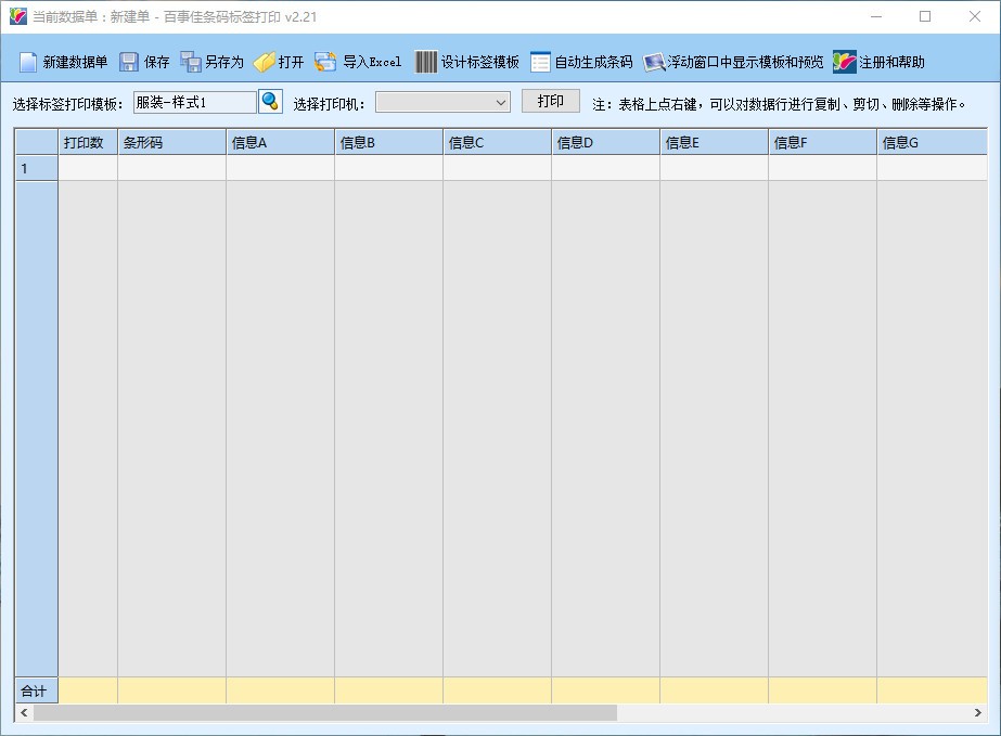 快速打印,选择标签打印模板和打印机即可进行打印