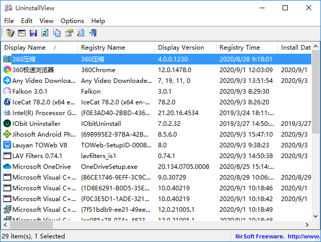 UninstallView是一款实用的软件卸载工具,它的界面风格与Windows自带的卸载工具差不多一样,但功能却比Windows自带的卸载工具强大;软件启动之后就会立即获取计算机中所有安装的程序信息,并且将这些程序的信息都放置在一个直观的表格中,用户通过双击的方式打开信息表格就可以知道程序的版本号,安装时间,安装路径以及程序的来源等信息;UninstallView还有一个特别强大的功能就是远程卸载计算机中的软件,只需要简单的连接之后,用户就可以在一台计算机上控制另一台计算机卸载程序,并支持静默卸载,在整个卸载过程中,被卸载的计算机不会出现任何提示。