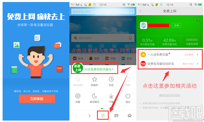 2、免费流量现在只能用于我们的手机浏览器中哦
