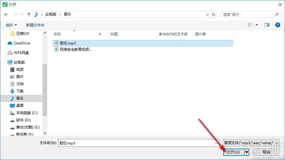 2.点击这个添加文件按钮之后,下一步我们在出现的选择文件界面中就可以选中想要合并的音频文件,然后点击右下角的打开按钮了。