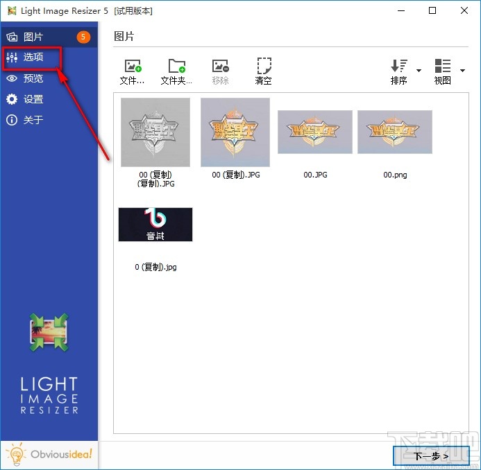 3.点击这个打开按钮将图片添加到软件界面之后,我们点击界面左边列表的选项,点击之后进入到下一步界面。