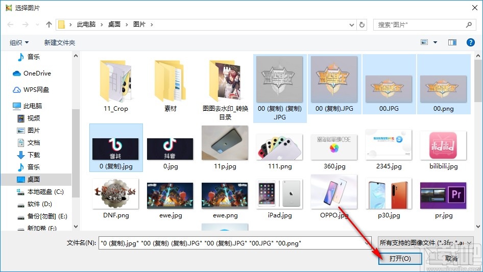 2.点击添加文件图标之后,接下来下一步会打开一个选择文件的界面,我们在这个界面中选中目标图片之后,点击右下角的打开按钮即可。