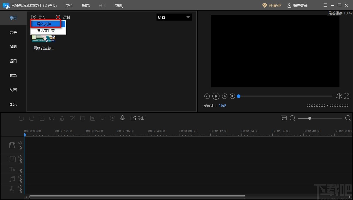1.首先第一步我们打开软件之后,点击左上角的导入文件选项卡,准备导入想要处理的视频文件。