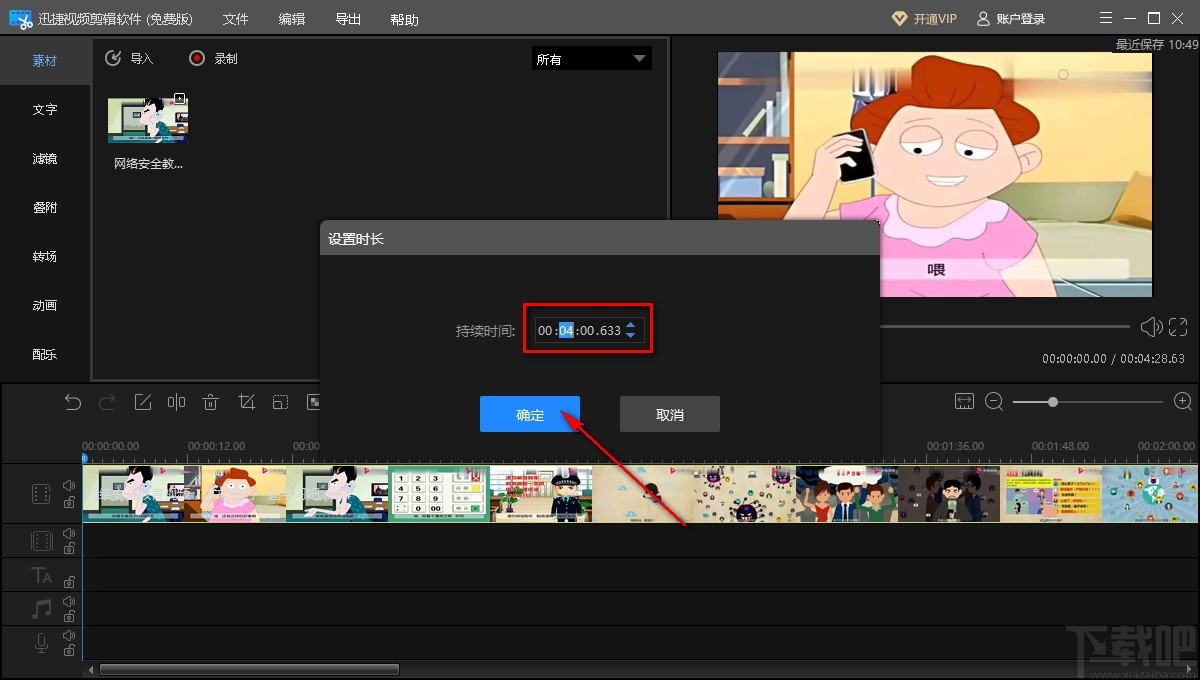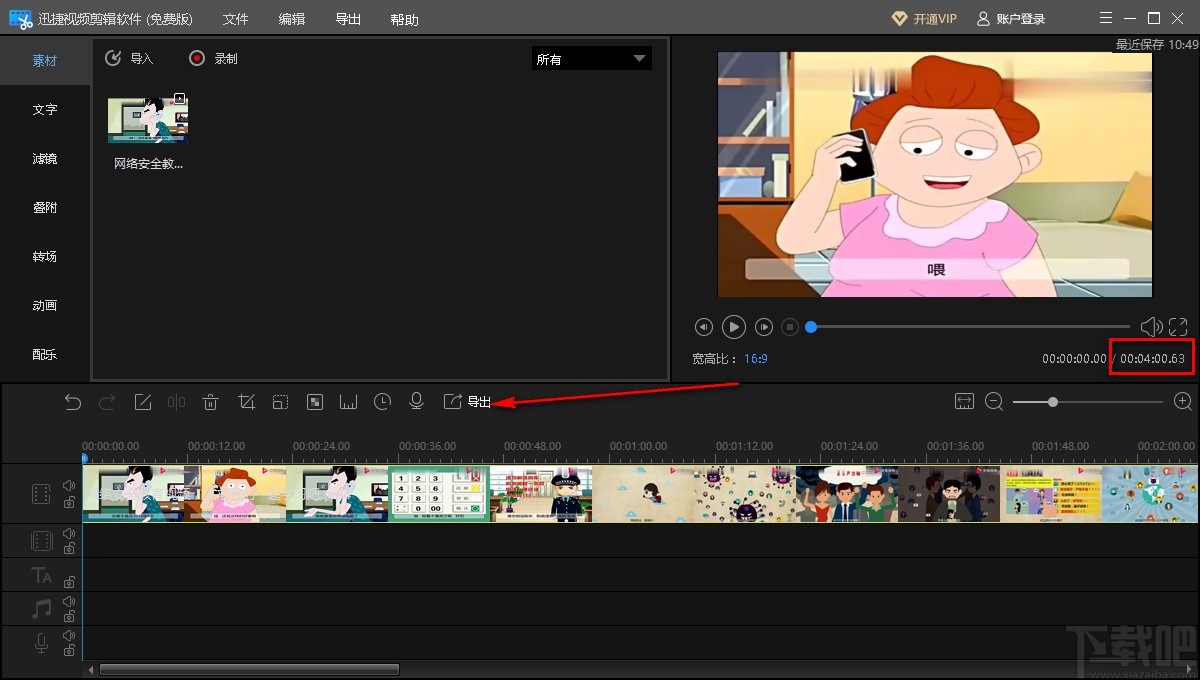 6.点击确定按钮之后,我们在主界面中可以看到更改之后的时长,我们点击界面中的导出按钮即可将视频导出保存下来。