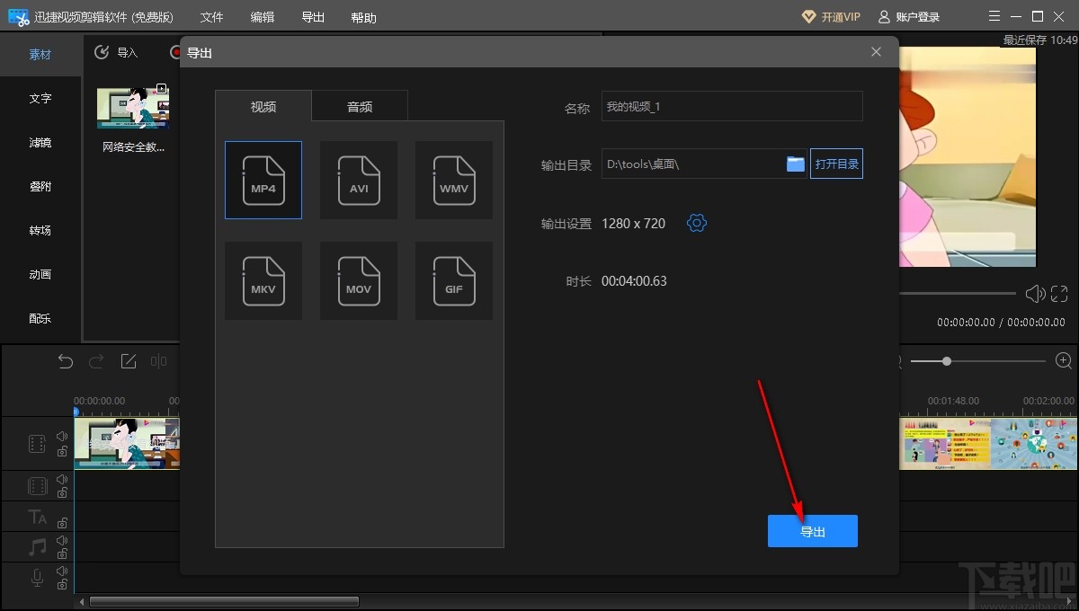 7.点击导出按钮之后会出现下图所示的界面,我们点击设置好导出视频的一些参数之后,点击右下角的导出按钮即可。