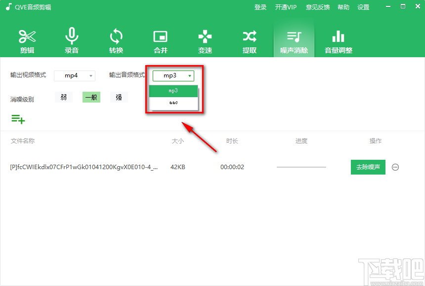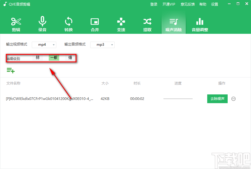 5.接着在页面左上方找到“消噪级别”选项,我们根据自己的需要在其后方对消噪级别进行选择即可。