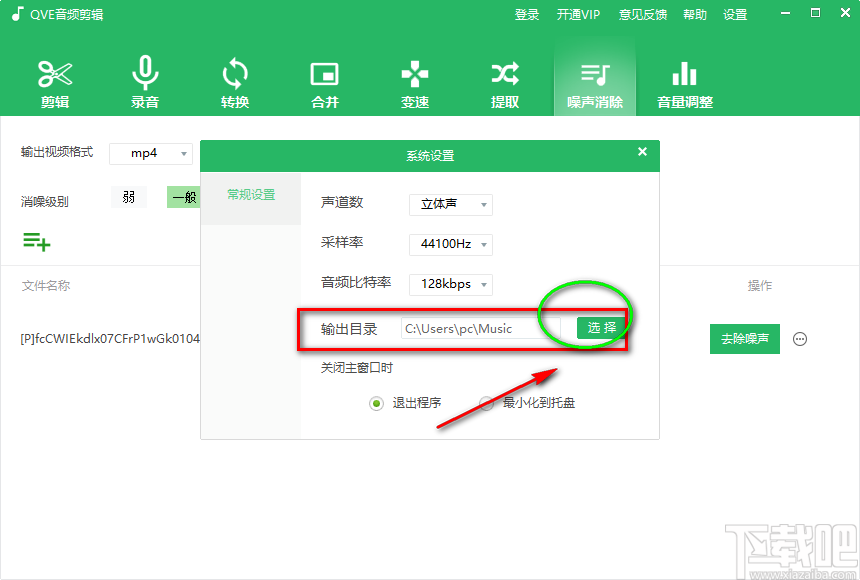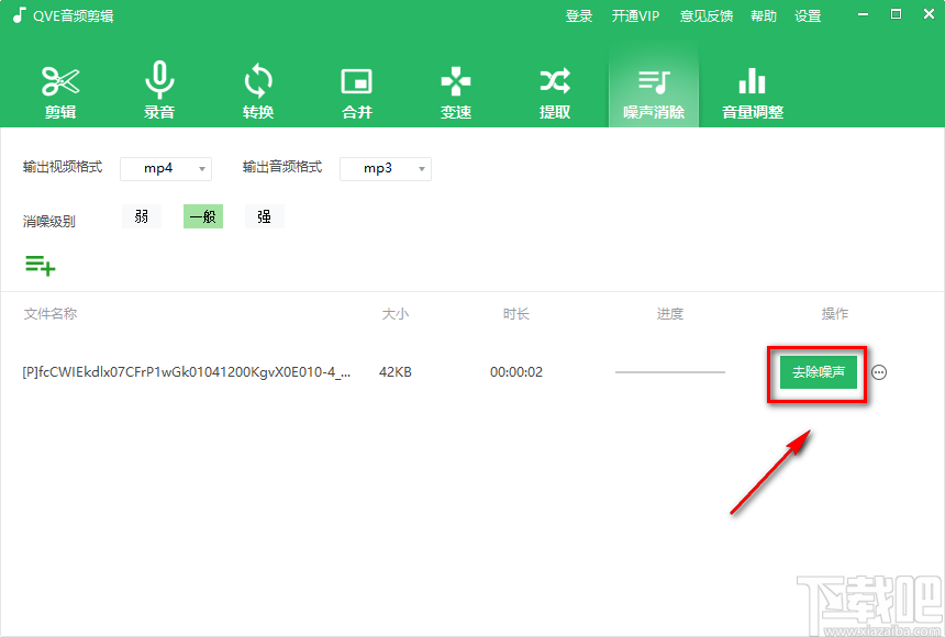 9.完成以上所有步骤后,我们在页面上找到文件列表,列表的最后有一个绿色的“去除噪声”按钮,我们点击该按钮就可以去除噪声,并将去除噪声后的文件保存在指定的文件夹中。