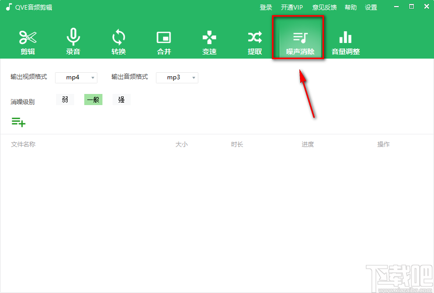 1.首先打开软件,在软件界面的顶部菜单栏中找到“噪声消除”选项,我们点击该选项进入噪声消除页面。