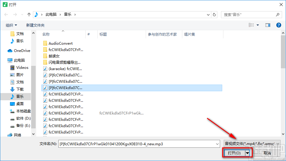 3.在文件添加页面中,我们找到需要消除噪声的音频文件后,再点击页面右下角的“打开”按钮即可将文件添加到软件中。