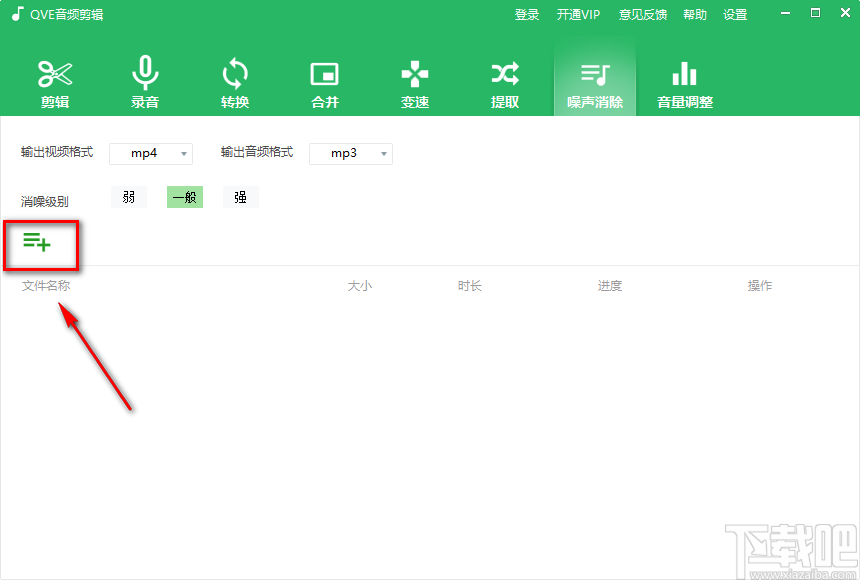 2.在噪声消除页面的左上方找到文件添加按钮,我们点击该按钮进入到文件添加页面。