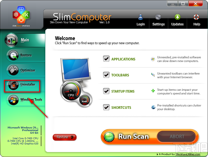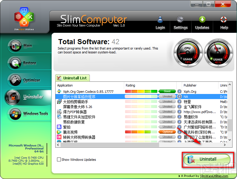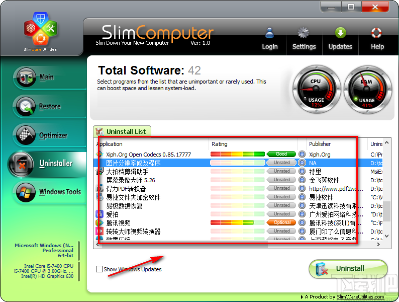 SlimComputer是一款非常实用的强力卸载软件,该软件可以帮助用户卸载掉电脑上不需要的软件、启动项和服务,以使软件系统运行速度更加快捷,电脑性能也更加稳定。相信很多小伙伴和小编一样,在下载软件时,不小心将一些流氓软件卸载下来,然后自己怎么也无法卸载删除这些软件,这种情况下就需要使用这款软件来卸载软件程序。这款软件卸载软件程序的方法很简单,只需要几个步骤就能完成,那么接下来小编就给大家详细介绍一下SlimComputer卸载软件程序的具体操作方法,有需要的朋友可以看一看。