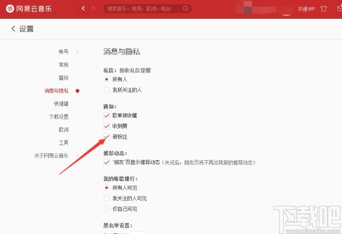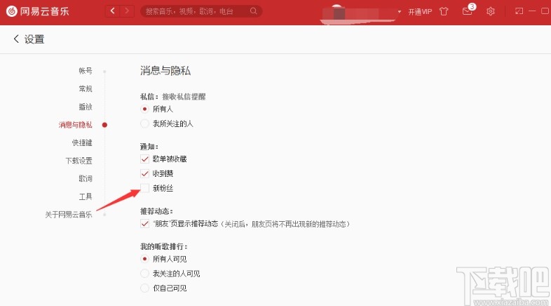以上就是小编今天跟大家分享的网易云音乐软件关闭新粉丝通知的具体操作方法,有需要的朋友赶紧试一试这个方法吧,希望能帮助到大家。